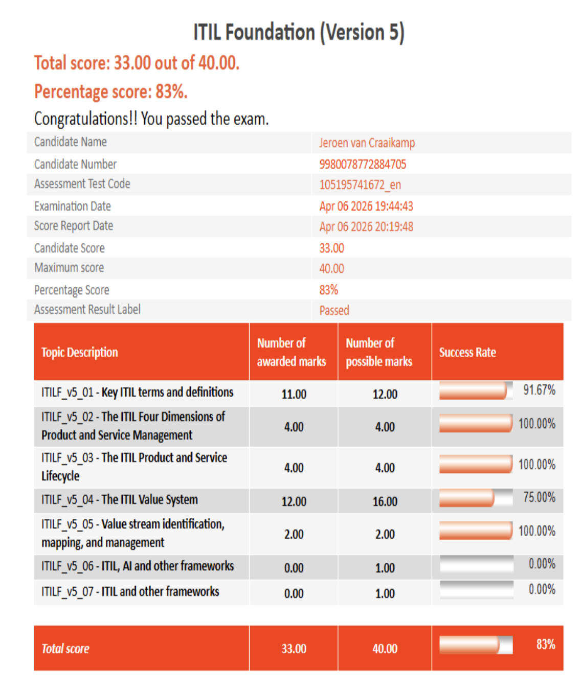 On April 6th 2026, I took the ITIL Version 5 exam.